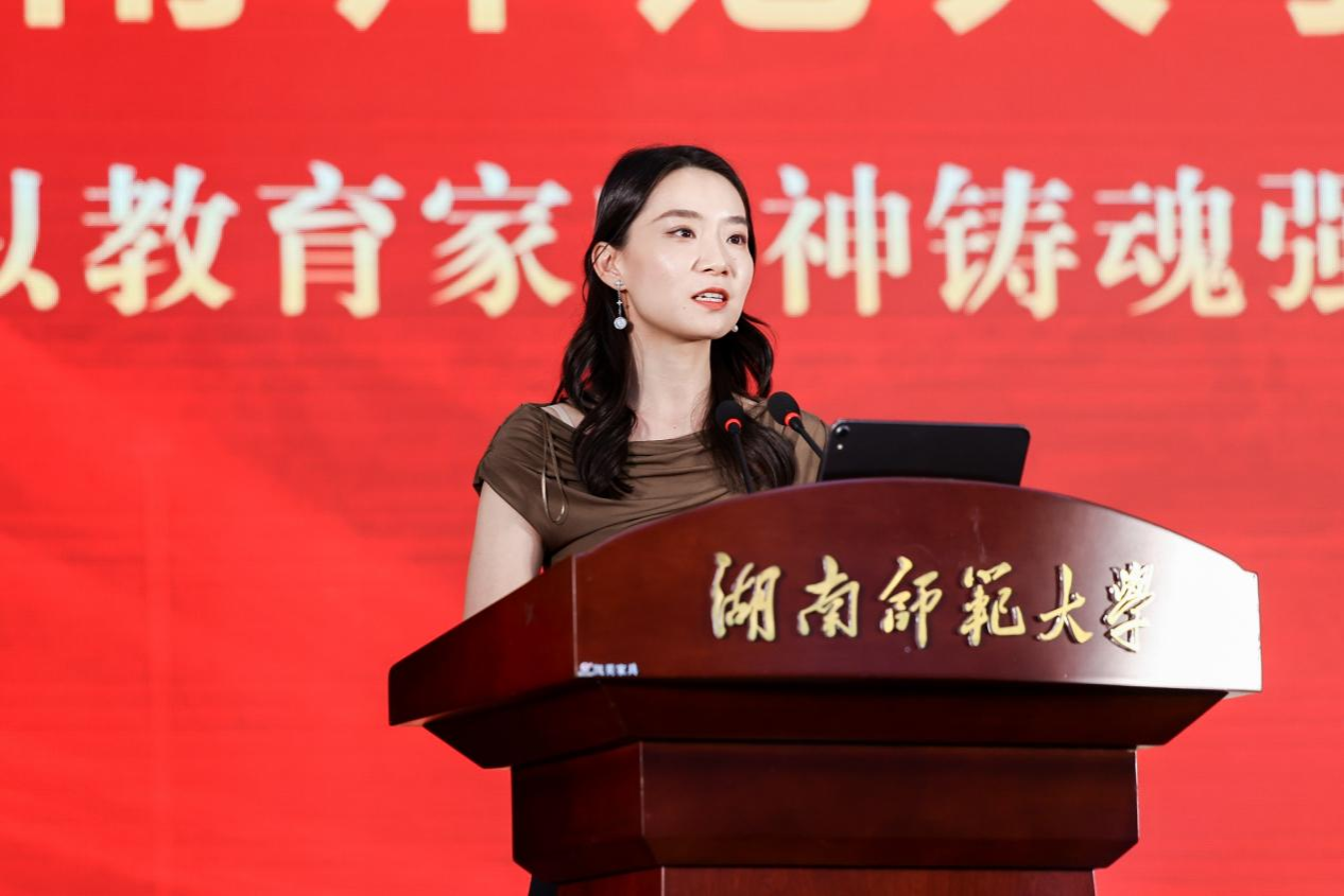 教职工代表、音乐学院新进教师王艺璇博士发言。她为能够加入华亿体育登录感到骄傲和幸福,并分享了自己的感悟:一是要持续精进学业,做学习的笃行者;二是要矢志修身养德,做学生的引路人;三是要扎根艺术实践,做时代的歌唱者。她承诺将以热忱之心投身教学科研,以创新之心拥抱时代变革,传承学校优良传统,为学校发展贡献自己的力量。