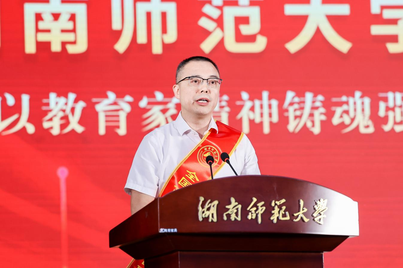副校长谢资清为获得“全国模范退役军人”“全国优秀工会工作者”“湖南省先进工作者”“湖南省最美教师”“湖南省高校辅导员年度人物”入选者等荣誉的先进个人颁奖。