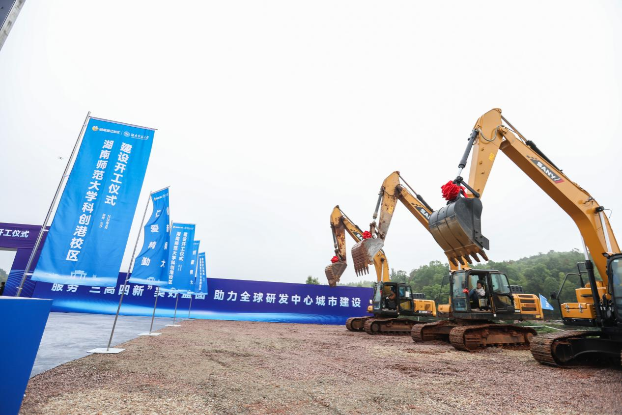 (记者 马铁泉 李采薇 黄依依 通讯员 王耀光)科创扬帆同启师大新程,三湘聚力共筑百年工程。9月26日上午,我校科创港校区建设开工仪式在湘江科学城举行。湖南省政协副主席李民,长沙市委副书记、湖南湘江新区(长沙高新区)党工委书记、岳麓区委书记谭勇,省发改委、省教育厅、省科技厅、省财政厅、省自然资源厅、省生态环境厅、省林业局、省体育局、省重点项目事务中心等厅局领导,校友代表,学校老领导,校长、中国工程院院士刘仲华,学校领导班子成员,各二级单位负责人,教师代表,学生代表和科创港校区参建单位代表等200余人参加开工仪式,共同见证我校发展史上的又一个里程碑时刻。副校长刘怀德主持开工仪式。