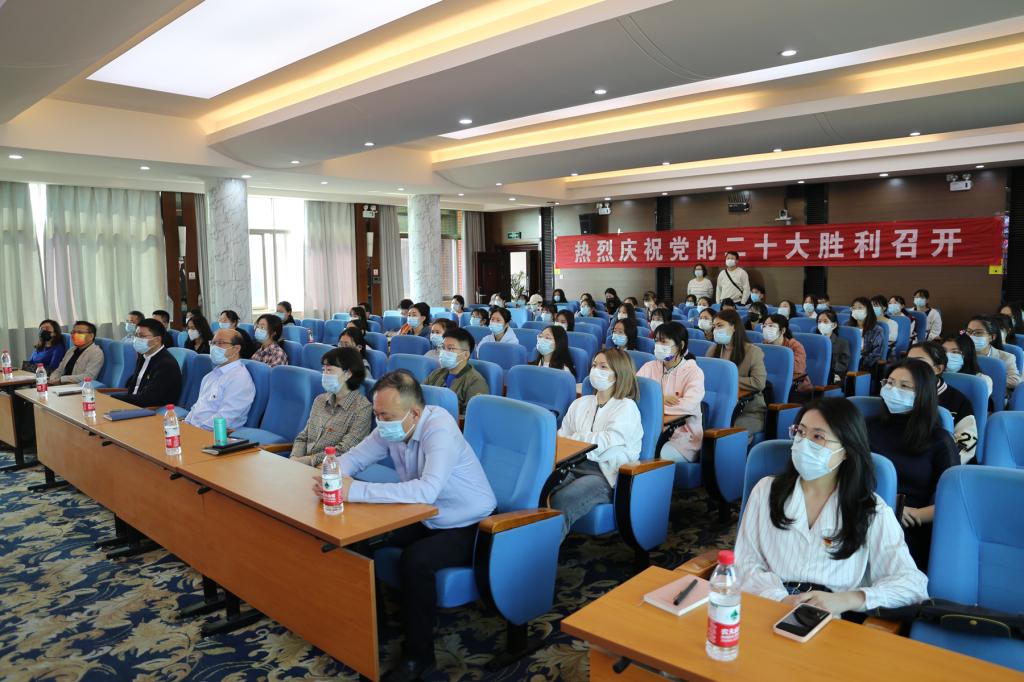 蒋洪新强调,各级党组织要进一步学习贯彻党的二十大报告,一是采取自学、集中学、专题学等多种方式学习贯彻党的二十大精神及相关会议精神,掀起全面学习热潮。二是将党的二十大精神传达到基层党员干部师生中去,让党的二十大精神深入人心。三是认真贯彻落实好党的二十大精神,深刻领悟党的教育方针,准确把握教育发展的新理念新思想,同时,做好学校疫情防控和安全稳定工作,为党的二十大胜利召开营造平安祥和的氛围。