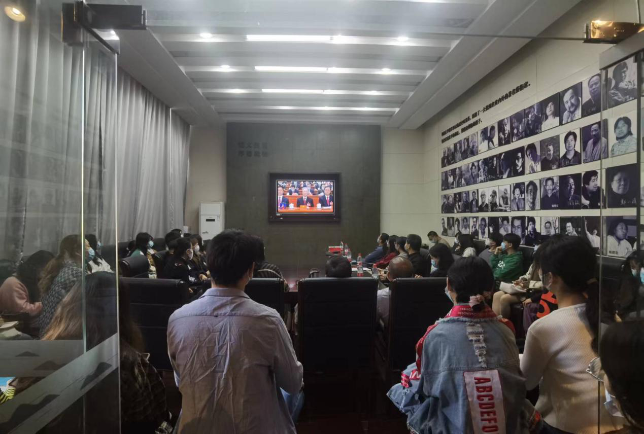 全校各二级党组织理论学习中心组分别组织集中收看和学习讨论。