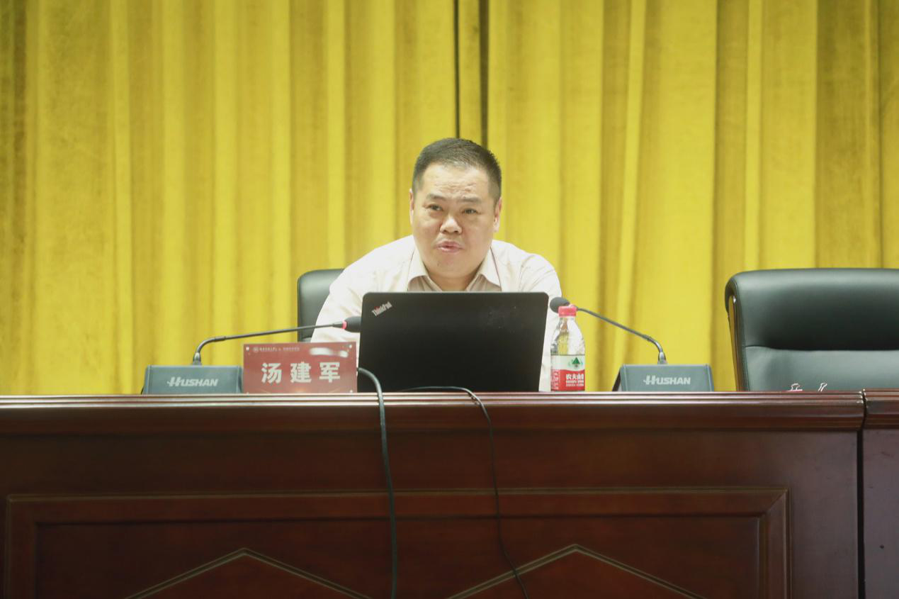 湖南省社会科学院(湖南省人民政府发展研究中心)党组成员、副院长、副主任汤建军做题为“以中国式现代化全面推进中华民族伟大复兴”的主题报告。他结合党的二十大报告,从中国共产党探索中国式现代化的伟大历程、新时代十年党和国家事业的伟大变革、中国化时代化的马克思主义等方面解读“什么是中国式现代化”“中国式现代化的本质要求”“中国式现代化总的战略安排”等相关问题。他表示,习近平总书记在党的二十大报告中庄严宣示:“从现在起,中国共产党的中心任务就是团结带领全国各族人民全面建成社会主义现代化强国、实现第二个百年奋斗目标,以中国式现代化全面推进中华民族伟大复兴”。这一重要论断明确了新时代新征程中国共产党的使命任务,高瞻远瞩、继往开来,鼓舞人心、催人奋进。他希望学院师生自信自强、守正创新、勇毅前行,认真学习贯彻党的二十大精神,发挥智力优势,不懈努力奋斗,为实现中国式现代化贡献师大力量。