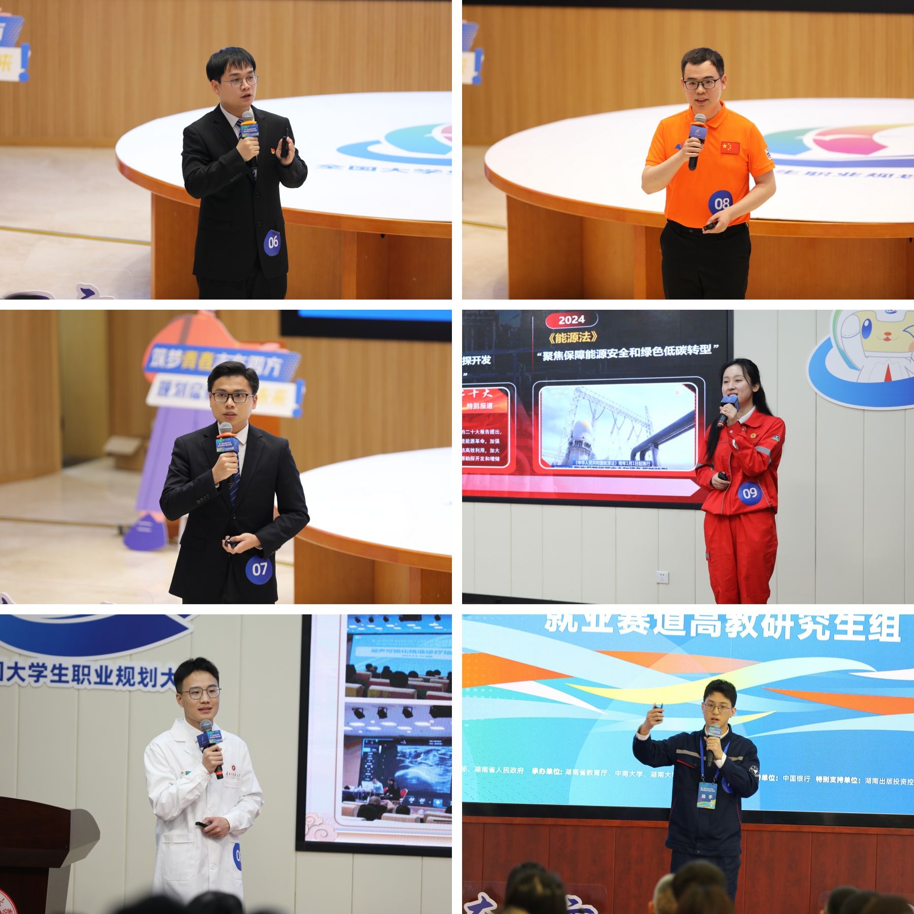 4月18日,大赛就业赛道高教研究生组全国总决赛在我校举行。图书馆报告厅、中和楼中和讲堂、化学楼230报告厅三大赛场组织有序,来自90所高校的90名选手,通过主题陈述、综合面试和天降offer三个环节,充分展示个人求职实战能力、综合素质、专业能力与目标职业及岗位要求的契合度、个人发展路径与就业市场需求的适应度。